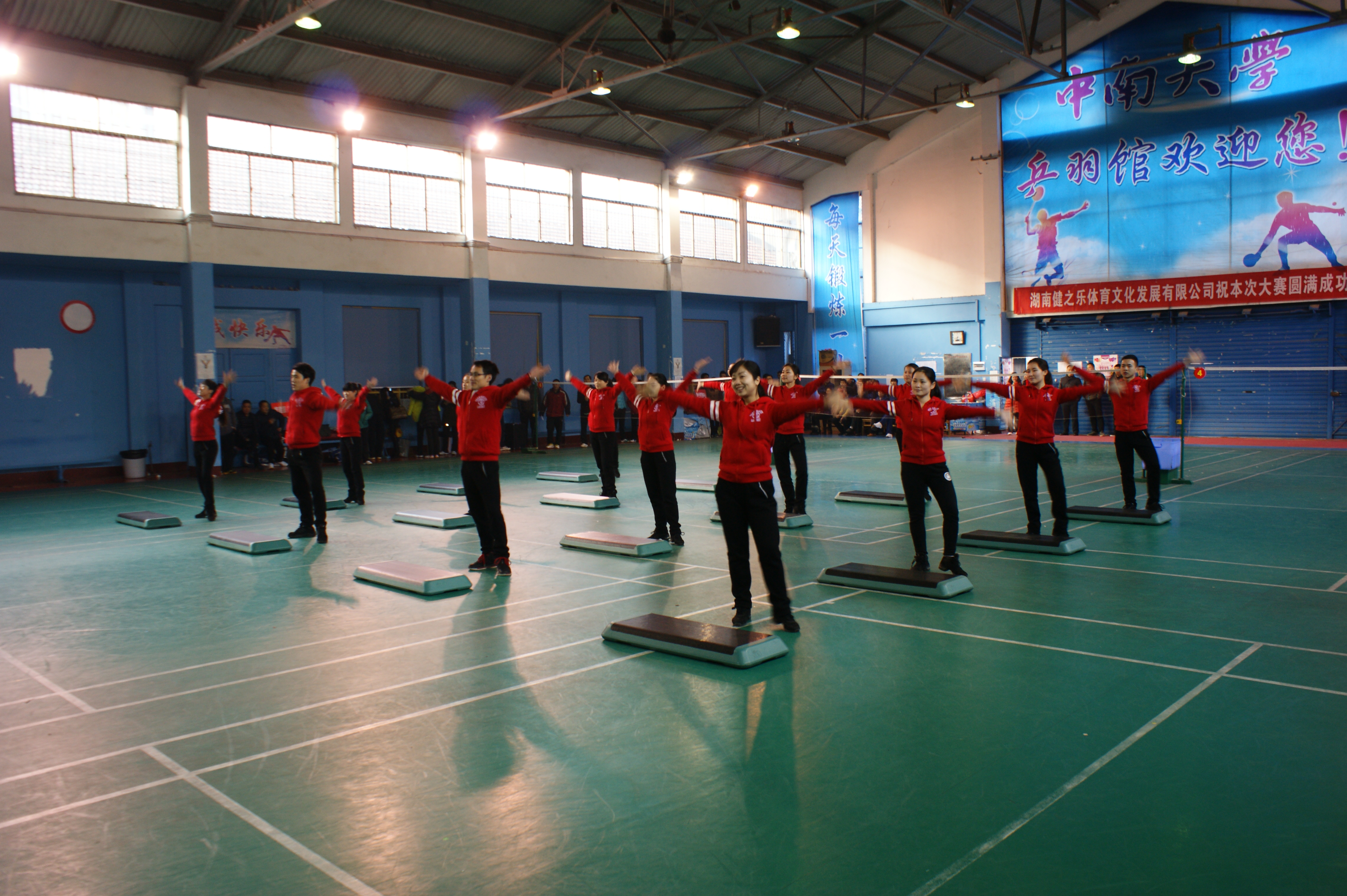 开赛前校园中心的“羽球宝贝”们表演了一曲激情似火、健康阳光的劲歌热舞后比赛正式拉开序幕。