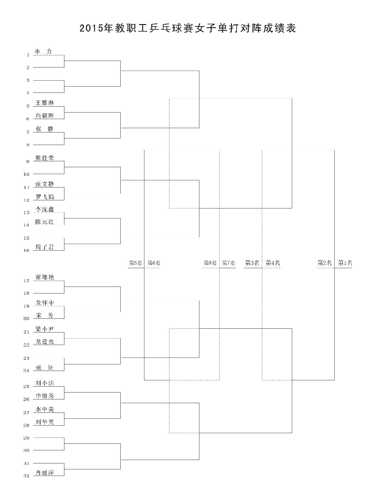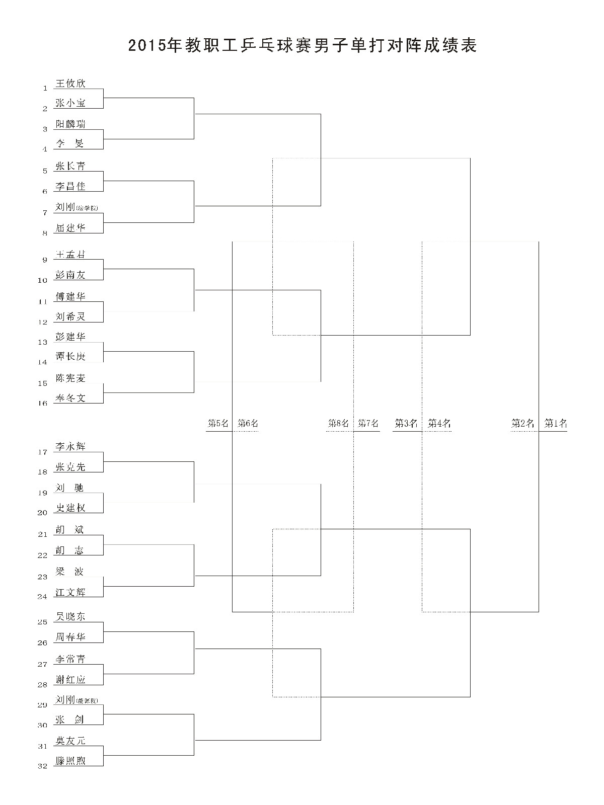 2015年教职工乒乓球赛单打对阵表