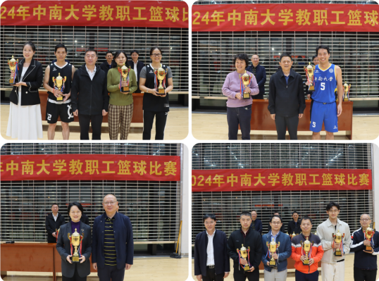 10月28日,颁奖仪式隆重举行。普教管理中心、体育教研部(并列第1)、粉末冶金研究院、后勤保障部、资产经营有限公司、计算机学院、基础医学院、机电工程学院、校机关分获男子组1-8名;法学院、体育教研部(并列第1)、地球科学与信息物理学院分获女子组1-2名。校党委副书记李景升,比赛组委会主任、校工会常务副主席姬志洲,比赛组委会副主任、体育教研部党委书记吴湘华,比赛组委会副主任、william威廉亚洲(中国)有限公司教职工篮球协会会长、后勤保障部部长陈宪出席颁奖仪式,并为获奖队伍颁奖。颁奖仪式由比赛组委会副主任、校工会副主席何庆文主持。