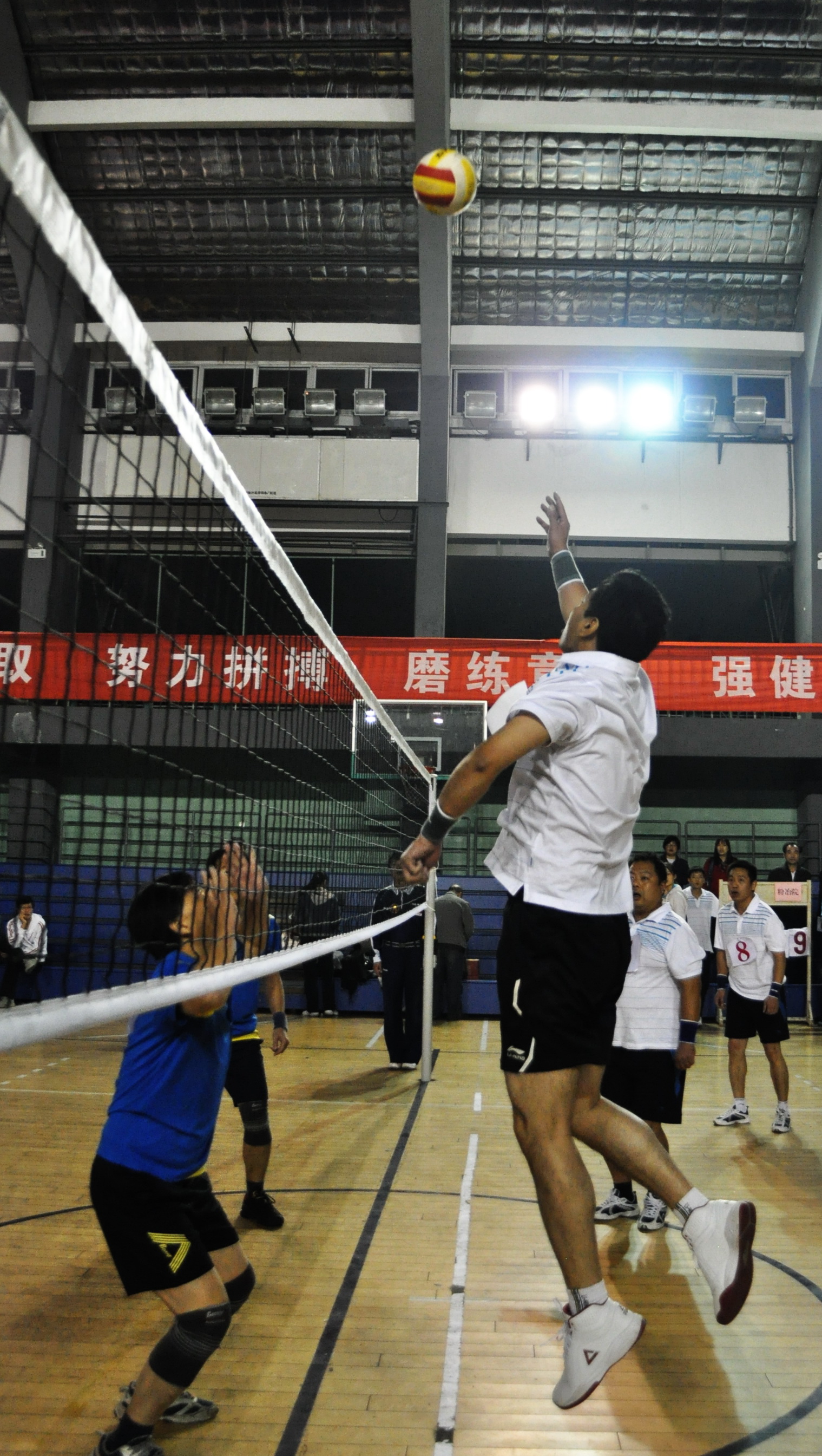 与此同时进行的男队比赛也进行得十分激烈。从两队实力来看,我院的总体水平要比土木院略胜一筹,但土木院的实力不容小觑。但我院网前实力比土木院表现的更为突出,利用拦网得分及强攻突破对方防线,最终艰难拿下第一局。在随后的第二局比赛中,我院在防守上作出调整,且网前实力依旧强劲,多点强攻、轻吊点杀、大力跳发,使土木院毫无招架之力,比赛的节奏也随之加快,并以25:9轻取第二局。最终我院男队以2:0成功拿下季军之位。