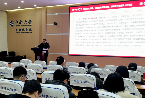 3月22日下午,自动化学院党委书记王一军教授为学院全体教职工党员、部分学生党员讲授“新学期第一堂党课”。学院近160名师生党员参加党课学习。