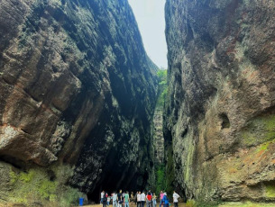 法学院一行首先来访平江仙姑岩红军营景区。红军岩景区系湖南省省级文物保护单位、湖南省全民国防教育基地,岳阳市党性教育、廉政文化教育、爱国主义教育基地,其内沟壑纵横,岩洞遍布,悬崖峭壁,山势险峻,是我国保存较为完整的红军营旧址之一。平江起义爆发后,依托红军营的隐秘地形和山洞,红五军的伤员曾在此疗伤救治并开展长达三年的游击战争。至今,红军营仍保留“红军哨卡”、“红军指挥所”、“红军大舞台”、“军需库”、“藏军洞”等革命遗迹。我院教职工以重走红军路、徒步登山的方式,感受红军坚定信仰、不畏艰难、艰苦奋斗的伟大革命精神,接受爱国主义、革命英雄主义精神的洗礼。