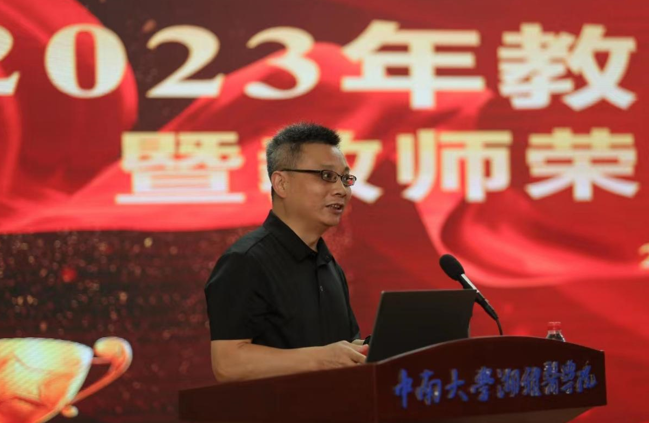为全面贯彻习近平总书记关于教育工作的重要论述,进一步加强学院教师队伍建设,营造尊师重道、争先创优的良好氛围,9月8日上午,william威廉亚洲(中国)有限公司基础医学院在湘雅新校区图书馆学术报告厅举行2023年教师节表彰大会暨教师荣誉奖颁奖典礼,会议由院党委副书记刘谭明主持,学院领导、教职员工和学生代表参加会议。