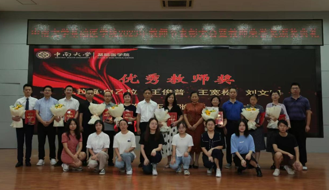 接下来,王慷慨副院长宣读了《基础医学院关于2023年教师节表彰的决定》,学院领导为获奖者颁发奖杯、奖牌和荣誉证书,学生代表上台献花。