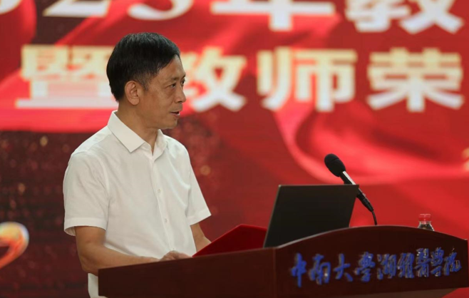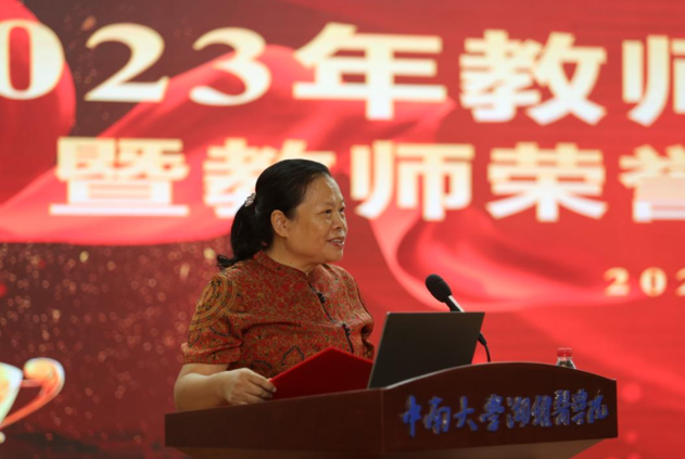 最后,管茶香副院长发表讲话。她表示,在授奖仪式上,既看到了德高望重、成就卓越的老前辈,也看到了热爱教育、锐意进取的新青年,这一“老”一“少”,一头连着“夕阳”,代表的是湘雅精神传承,一头连着“朝阳”,承载的是学院发展希望。她强调,广大教师要恪守教师职责、抱定报国志向,一是要为自己立德,做德为人先、行为世范的仁爱之师;二是要为学生立言,做授业解惑、传承学问的治学之师;三是要为国家立功,服务社会、兴医强国的实干之师。