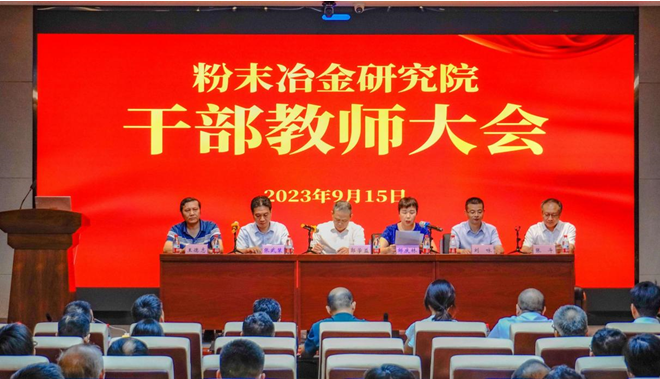 9月15日上午,粉末冶金研究院在三一大楼603报告厅召开干部教师大会,宣布对研究院新一届领导班子的任免决定。校党委组织部副部长邹庆林,粉末冶金研究院新老班子成员、中层正职、干部教师代表参加大会,会议由邹庆林副部长主持。