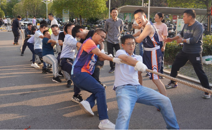 本次趣味运动会共设置“不倒森林”、“跳绳比赛”、“运球接力”、“袋鼠跳”和“幸运拔河”五个比赛项目,学院教职工按所在部门单位组队,以积分制形式进行比拼。首先进行的是跳绳比赛,参赛队员们默契配合,时刻保持节奏,热火朝天地进行着比赛。“运球接力”比赛过程中,队员们使出浑身解数,协同配合,接力运球到最后终点。“袋鼠跳”比赛中,队员们你追我赶,奋勇争先,留下一片欢声笑语。“不倒森林”比赛也展现出一番别样的紧张趣味,每位队员精神高度集中,通力协作,努力使其屹立不倒。“幸运拔河”比赛中队员们发扬团结精神,全力以赴,凝聚力量为集体荣誉而拼搏。
