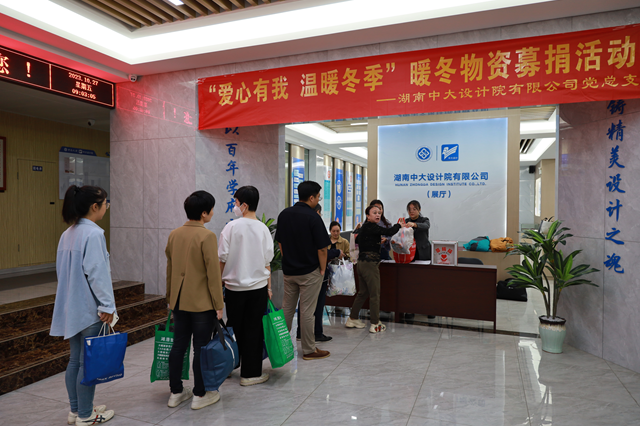 设计院党总支发起的暖冬衣物募捐倡议得到了员工们的积极响应。10月27日上午,一件件棉衣、毛衣、手套以及厚实裤子等防寒衣物陆续被送至募捐活动物资存放点,短短一个小时,共收到各类防寒衣物160多件,爱心捐款10000多元。