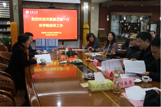 2023年12月12日下午,湖南省教育工会副主席邓曼、普教部副部长龙培来我校实地调研资源加工与生物工程学院教职工小家创建工作。中国工程院院士邱冠周,校党委副书记、校工会主席付刚华,校工会副主席姬志洲、张思纯,资源加工与生物工程学院党委书记范晓慧、党委副书记刘若华、工会副主席申丽及工会工作人员参加了考核验收汇报会。