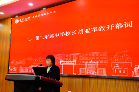 第二附属中学校长胡亚军向大会的召开表示热烈祝贺。她表示,此次大会是普教大家庭政治生活中的一件大事,希望各参会代表提高政治站位,树立服务意识,有效发挥桥梁纽带作用,营造和谐奋进氛围,共谋普教的优质和均衡发展。