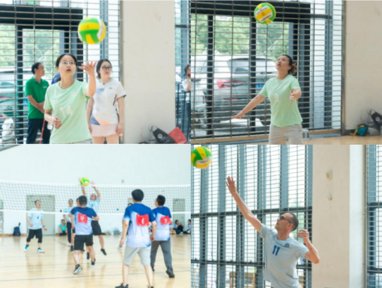 当晚进行的男子组“16进8”比赛,更是成为了这场赛事的焦点之战。经过多轮激烈的比拼,男子组的教职工们始终全力以赴。虽未晋级八强,他们在赛场上每一次奋力的跳跃、每一回精准的传球、每一记有力的扣杀,都淋漓尽致地诠释了地信院教职工积极向上、勇于挑战的风采。他们的拼搏精神已然成为赛场上最耀眼的光芒,激励着每一位地信人在未来的工作和生活中不断奋进。
